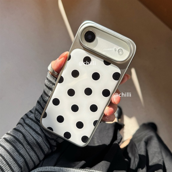 Case Trắng Chấm Bi Đen Viền Bạc - 16PRO