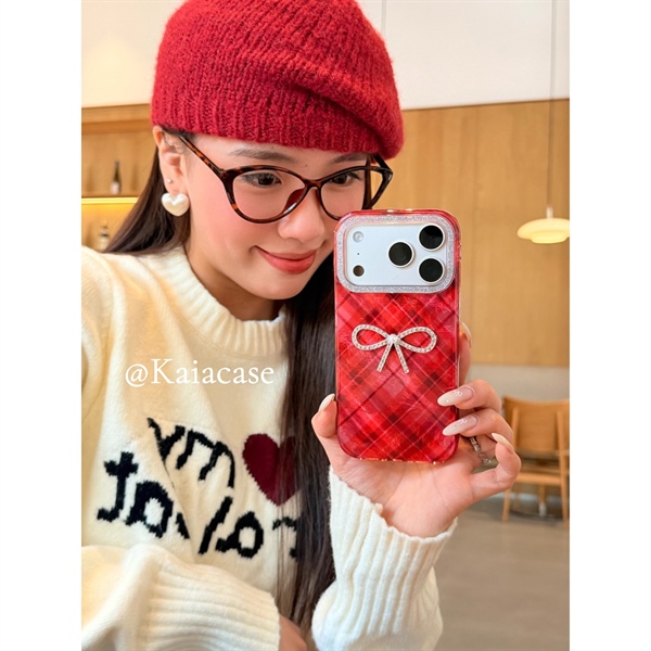 Case Caro Đỏ Nơ Nâu Viền Bạc - 16PROMAX