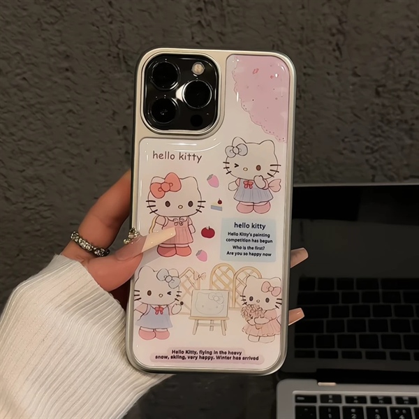 Case Trắng Hello Kitty Đứng Viền Bạc - 16Promax