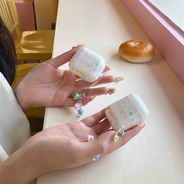 Case Airpod Ngôi Sao Xanh + Móc Gấu -3
