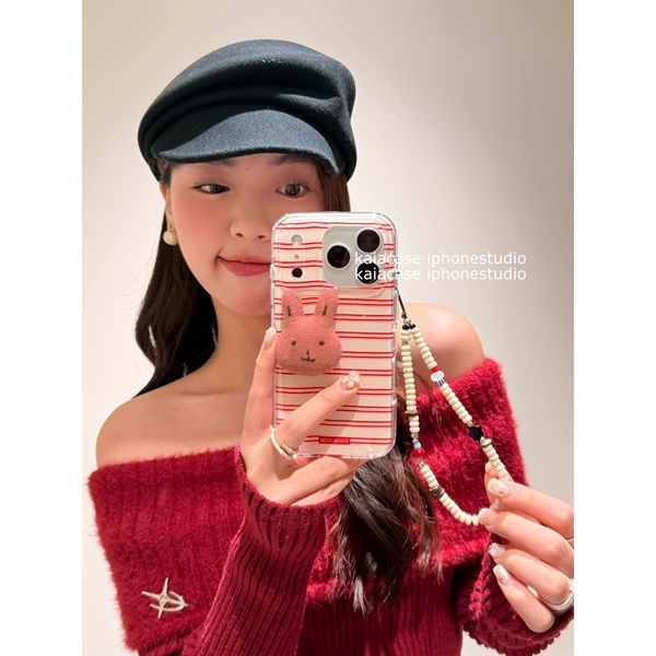 Case Sọc Đỏ Gắn Gấu + Dây - 15Promax