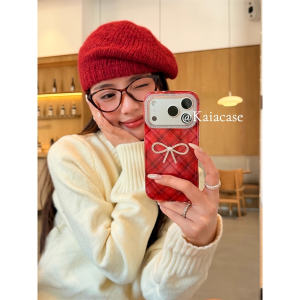 Case Caro Đỏ Nơ Đính Hạt Nổi - 17Promax