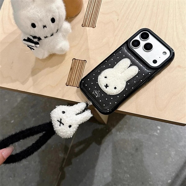 Case Đen Thỏ Trắng Vải + Móc Thỏ - 14PRO