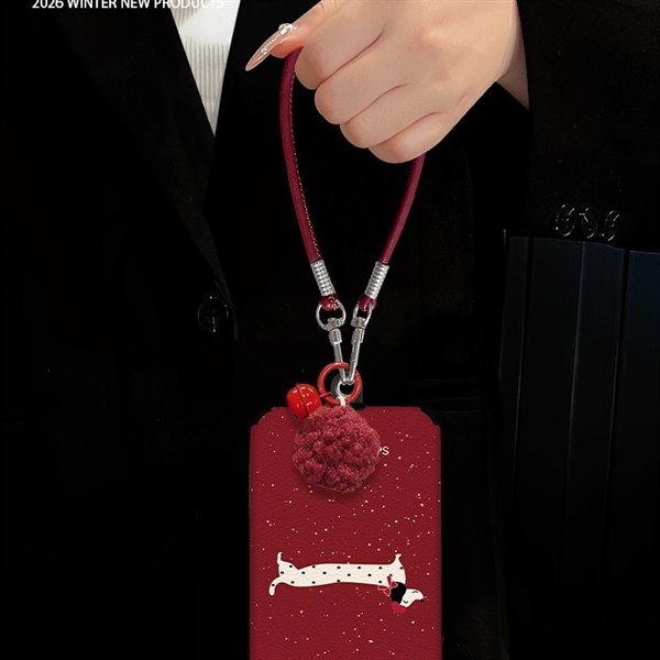 Case Đỏ Puppy Trắng Dài + Dây - 15Plus