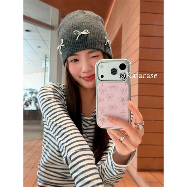 Case Hồng Nhiều Nơ Xám Viền Bạc - 17Pro