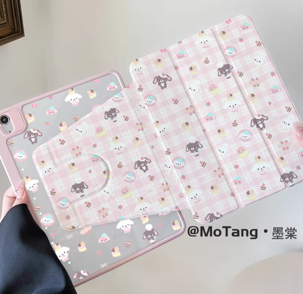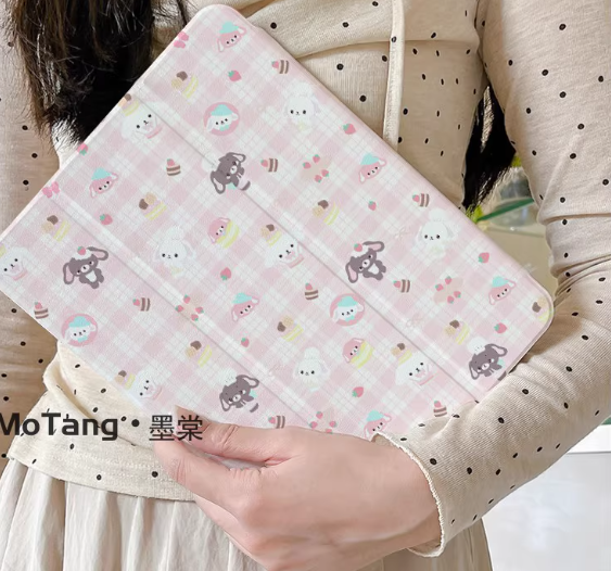 Case Ipad Caro Hồng Bánh Thỏ - Air 6/7