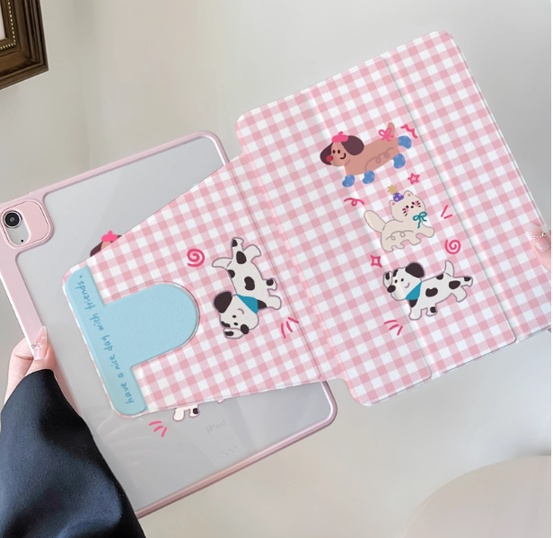 Case Ipad Caro Hồng Cún Nâu - Gen 10/11