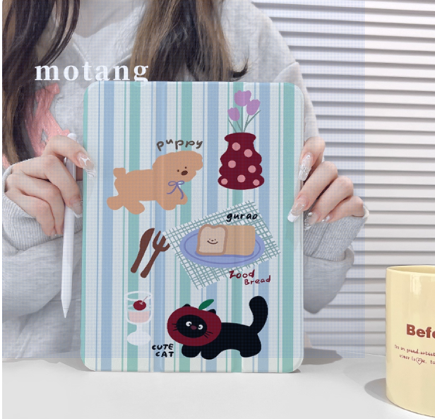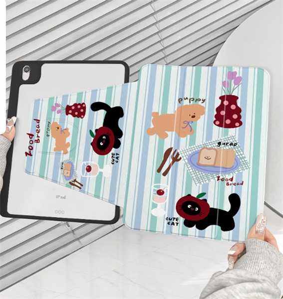 Case Ipad Xanh Cute Cat Đen - Air 6/7