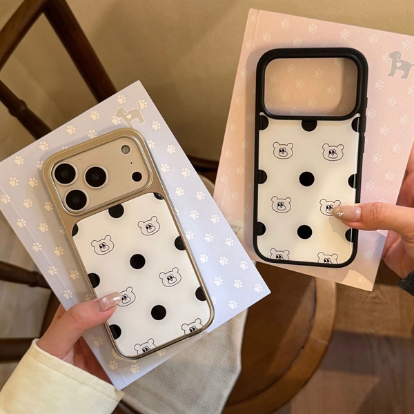 Case Trắng Chấm Bi Gấu Viền Bạc - 15 PLUS
