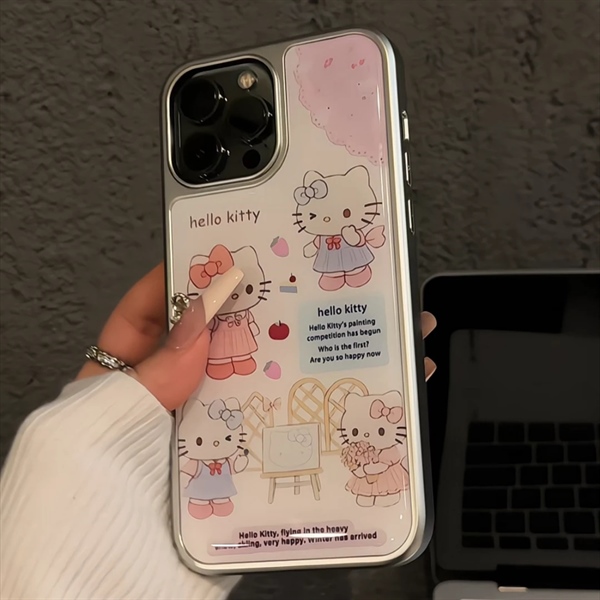 Case Trắng Hello Kitty Đứng Viền Bạc - 15Promax