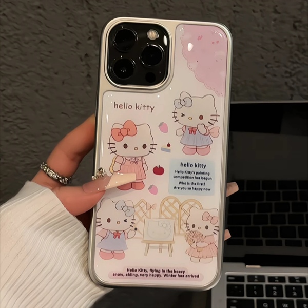 Case Trắng Hello Kitty Đứng Viền Bạc - 17Promax