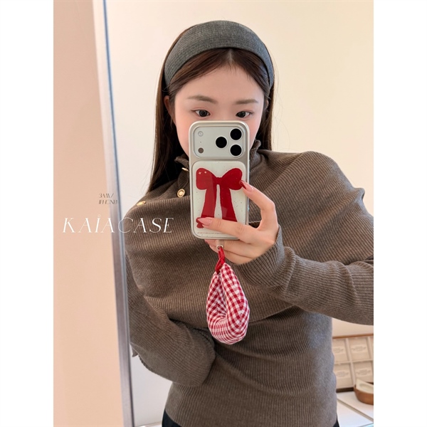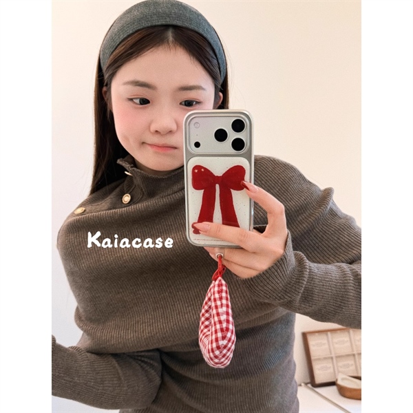 Case Trắng Nơ Đỏ Viền Bạc + Dây - 17PRO