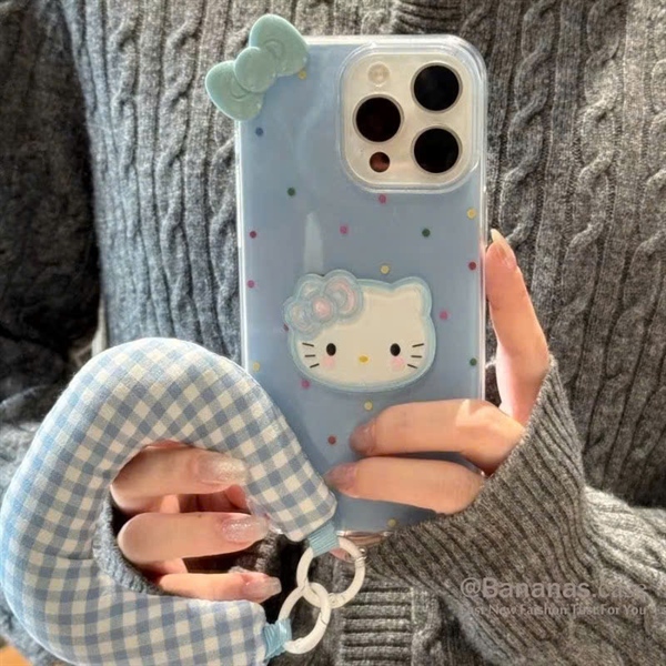 Case Xanh Mèo Nơ Xanh + Dây - 15Plus