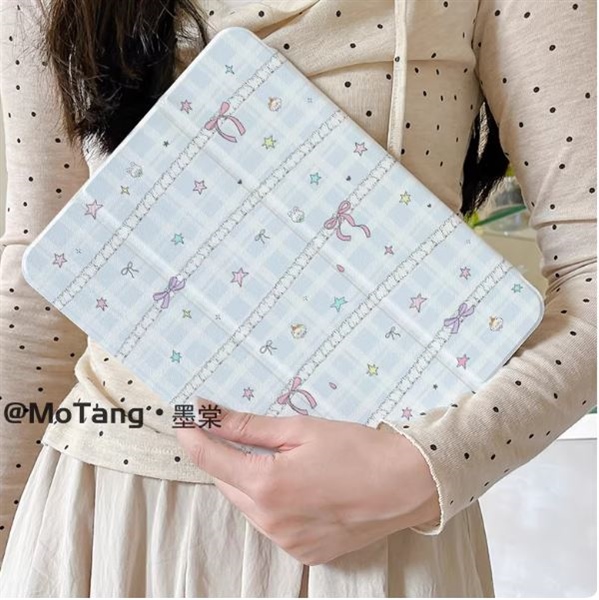 Case Ipad Caro Xanh Nơ Hồng - Gen 10/11