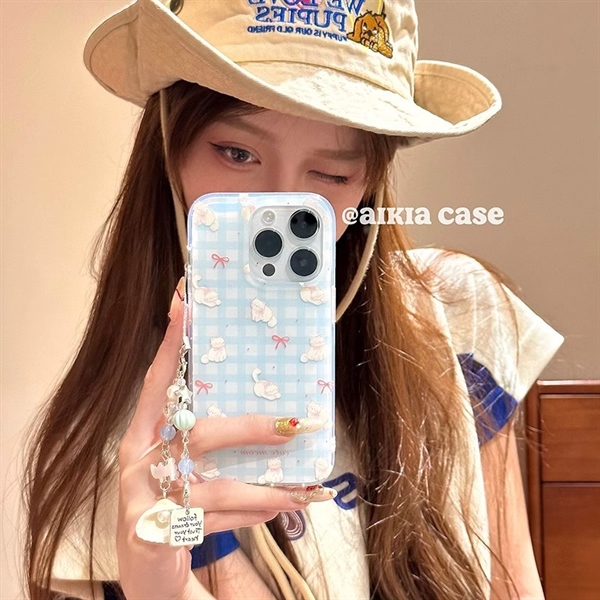 Case Xanh Chấm Bi + Móc Cún Da - 11