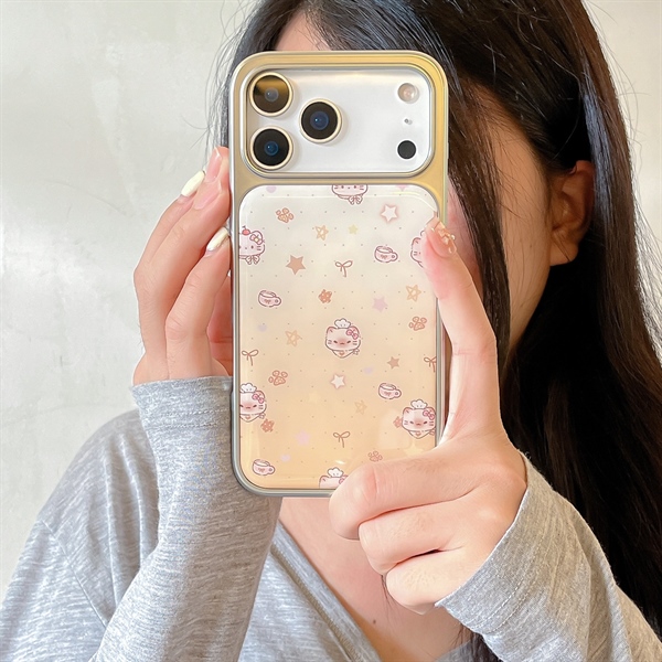 Case Mèo Loang Vàng Viền Bạc - 15PRO
