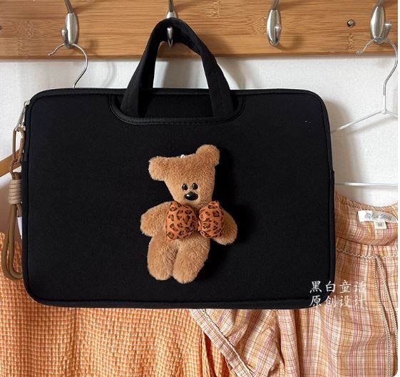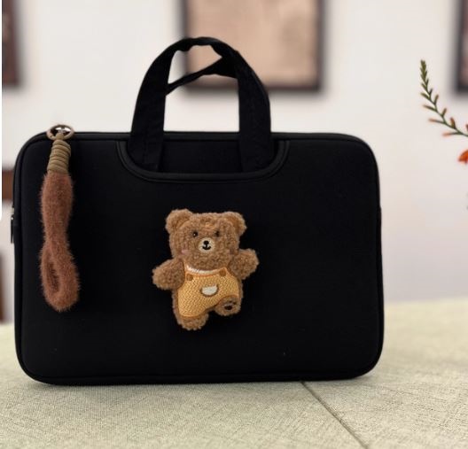 Túi Laptop Đen Gấu Nâu Thắt Nơ - 13/14Inch
