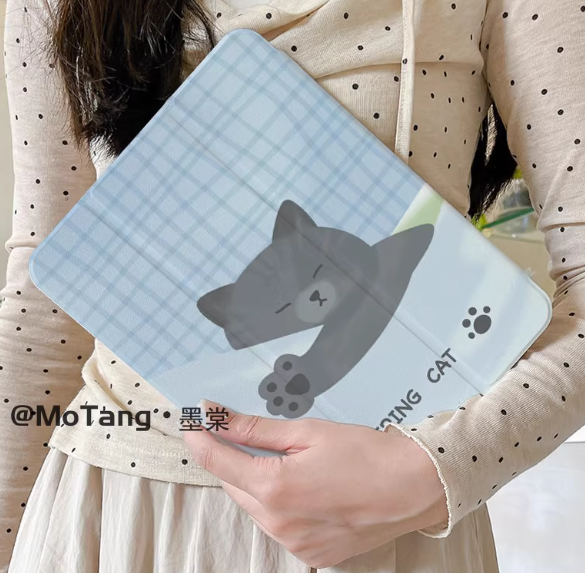 Case Ipad Xanh Cute Cat Đen - Air 6/7
