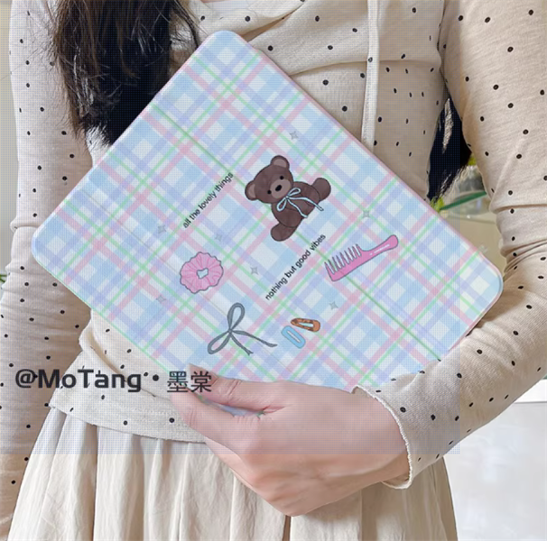 Case Ipad Caro Hồng Gấu Nâu - Air 6/7