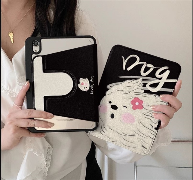 Case Ipad Đen Dog Trắng-12.9INCH