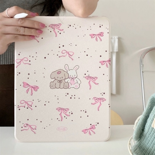 Case Ipad Trắng Thỏ Nơ Hồng - Gen 10/11