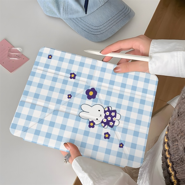 Case Ipad Caro Xanh Mèo Trắng - Gen 10/11